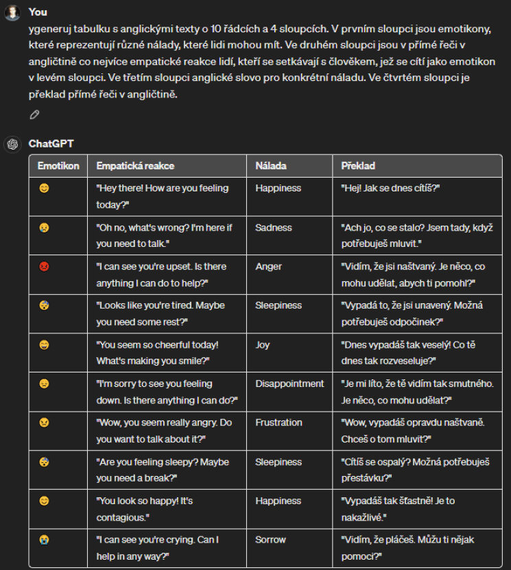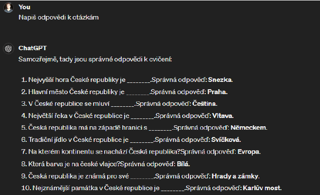 ve správném tvaru (“čeština” místo “česky”), proto je nutné výstupy kontrolovat, ale pointou