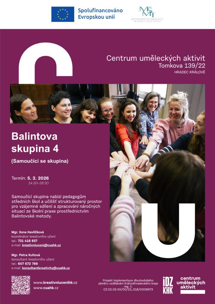 Oblíbená samoučící skupina nabízí pedagogům středních škol a učilišť a ostatním zájemcům strukturovaný prostor pro vzájemné sdílení a zpracování náročných situací ze školní praxe prostřednictvím Balintovské metody. Během čtyřhodinového setkání si účastníci ve skupině maximálně 12 osob mohou podělit o své konkrétní případy a výzvy z učitelské praxe, přičemž každý má možnost přinést specifickou situaci ze své třídy a získat na ni zpětnou vazbu, nové náhledy na možná řešení a pochopení od kolegů. Balintovská metoda umožňuje strukturované sdílení situací a společnou reflexi, která posiluje profesionální kompetence, snižuje riziko vyhoření a rozvíjí schopnost lépe porozumět studentům a pedagogickým vztahům. Skupina vytváří příležitost pro profesní rozvoj prostřednictvím vzájemného učení a podpory mezi kolegy.