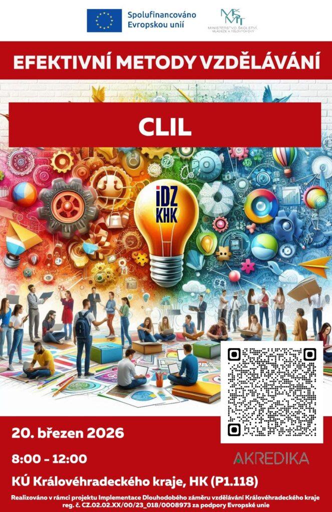 Srdečně vás zveme na vzdělávací kurz zaměřený na Efektivní metody vzdělávání – CLIL. Záměrem je podpořit pedagogické pracovníky přímo působící v procesu vzdělávání, kteří mají odborné znalosti z oblasti pedagogiky, psychologie a didaktiky a mohli tak kvalifikovaně a efektivně propojit své dosavadní teoretické znalosti a praktické dovednosti a rozšířit své pedagogické kompetence. Během kurzů získají i tipy na řadu nástrojů a technik využitelných v praxi. Důraz bude kladen na aktuální problémy a trendy v oblasti efektivních a inovativních metod vzdělávání.
