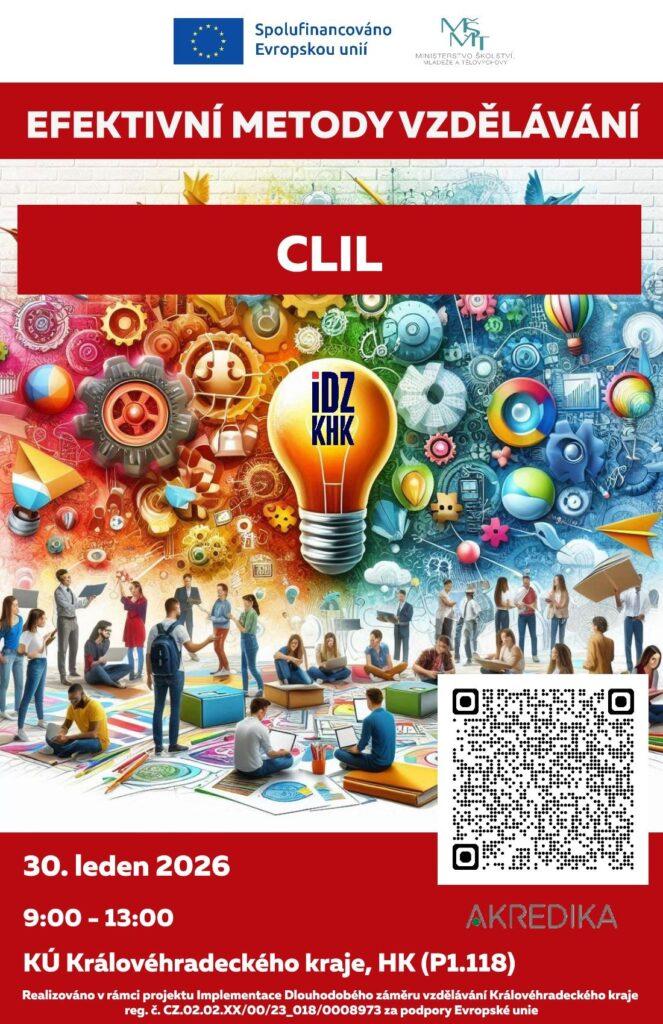 Srdečně vás zveme na vzdělávací kurz zaměřený na Efektivní metody vzdělávání – CLIL. Záměrem je podpořit pedagogické pracovníky přímo působící v procesu vzdělávání, kteří mají odborné znalosti z oblasti pedagogiky, psychologie a didaktiky a mohli tak kvalifikovaně a efektivně propojit své dosavadní teoretické znalosti a praktické dovednosti a rozšířit své pedagogické kompetence. Během kurzů získají i tipy na řadu nástrojů a technik využitelných v praxi. Důraz bude kladen na aktuální problémy a trendy v oblasti efektivních a inovativních metod vzdělávání.