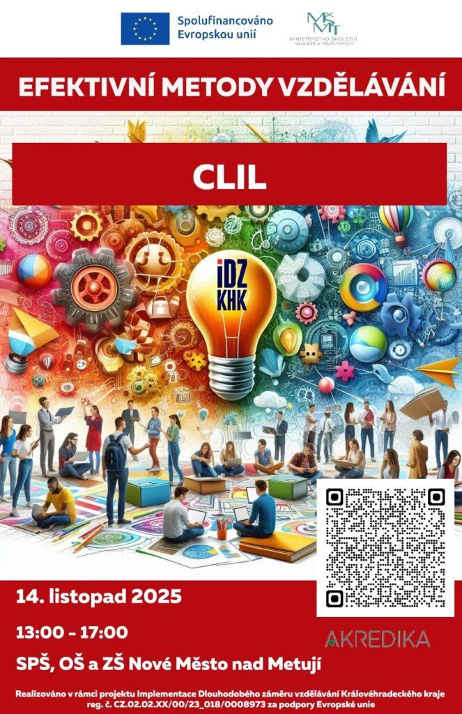 Srdečně vás zveme na vzdělávací kurz zaměřený na Efektivní metody vzdělávání – CLIL. Záměrem je podpořit pedagogické pracovníky přímo působící v procesu vzdělávání, kteří mají odborné znalosti z oblasti pedagogiky, psychologie a didaktiky a mohli tak kvalifikovaně a efektivně propojit své dosavadní teoretické znalosti a praktické dovednosti a rozšířit své pedagogické kompetence. Během kurzů získají i tipy na řadu nástrojů a technik využitelných v praxi. Důraz bude kladen na aktuální problémy a trendy v oblasti efektivních a inovativních metod vzdělávání.