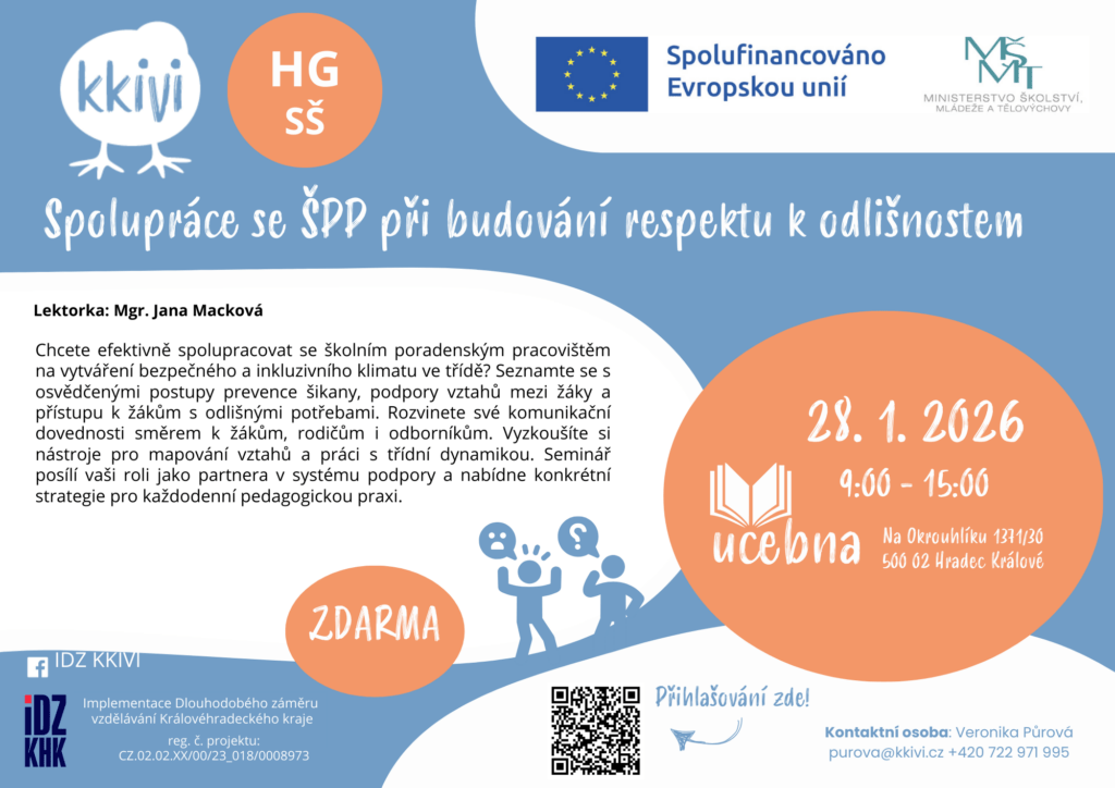 Více informací o kurzech pro pedagogy a žáky najdete na KKIVI_kurzy IDZ zdarma, více o našich projektových aktivitách také na KKIVI – Školství v Královéhradeckém kraji (skolstvikhk.cz)